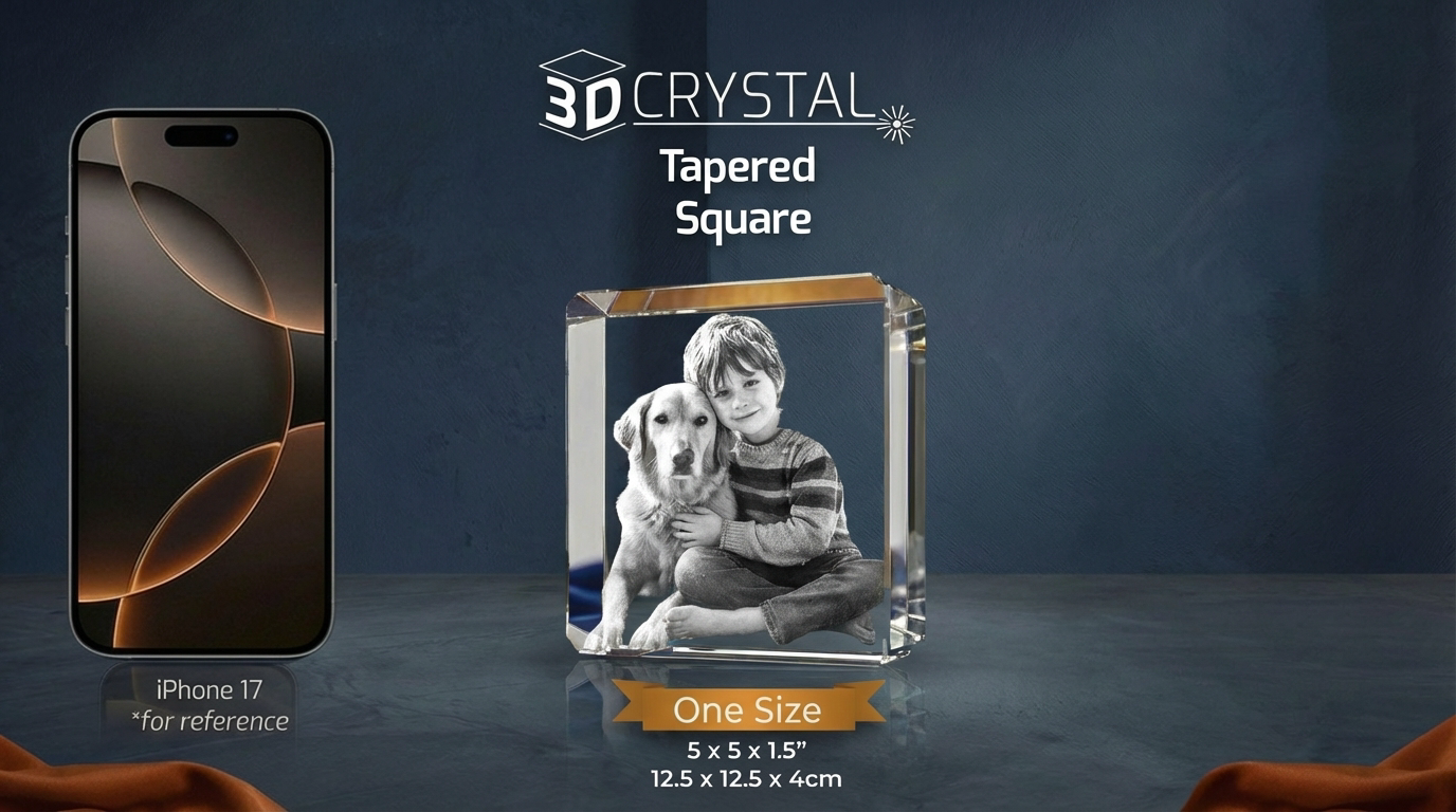 - No Photo restrictions. Since we never farm out the work to other artists, we can model any number of people in your photo for any shape of crystal you request without upcharges.